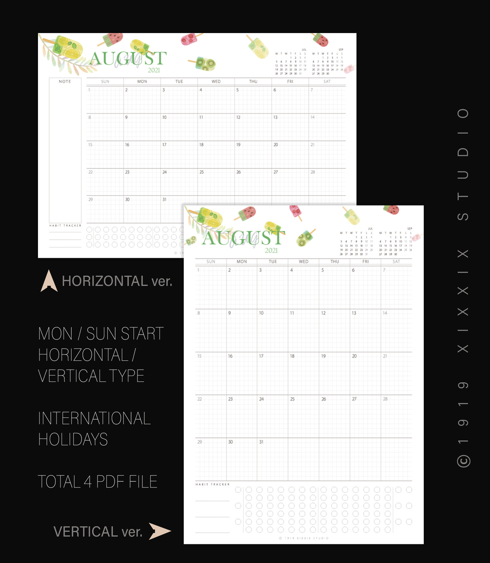 [2021 AUG Calendar] 8월달력 FREE SHARING for Internation 국제휴일 for IPAD Note Apps