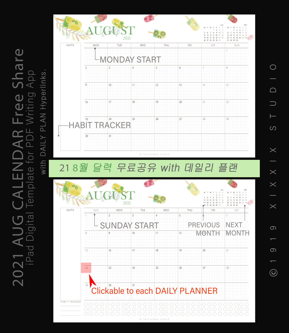 [2021 Calendar] 8월달력 무료공유 AUG CALENDAR FREE SHARING for Internation 국제휴일 for IPAD Note Apps