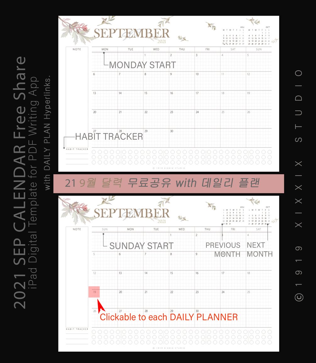 [2021 Calendar] 9월달력 무료공유 SEP CALENDAR FREE SHARING for Internation 국제휴일 for IPAD Note Apps
