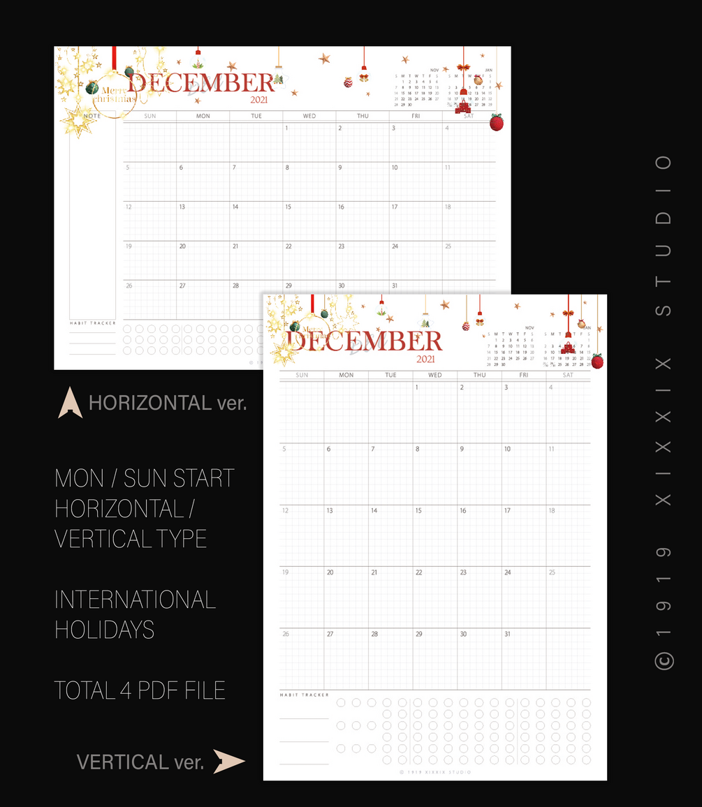 [2021 DEC Calendar] 12월달력 FREE SHARING for Internation 국제휴일 for IPAD Note Apps